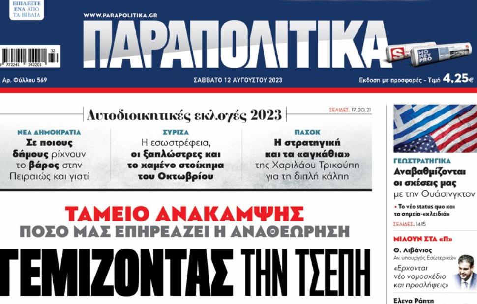 Με τίτλο: «Γεμίζοντας την τσέπη» κυκλοφορούν αύριο, Σάββατο 12 Αυγούστου, τα «Παραπολιτικά».