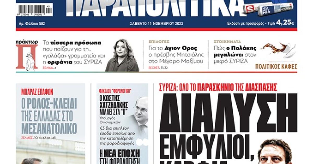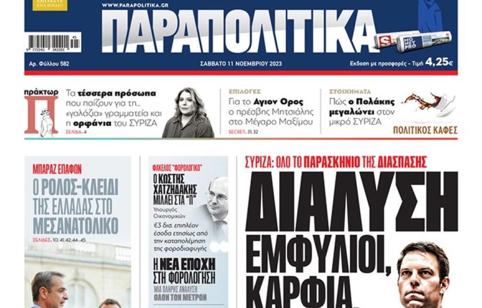 Με τίτλο: «Διάλυση, εμφύλιοι, καρφιά, ίντριγκες» κυκλοφορούν αύριο, Σάββατο 11 Νοεμβρίου, τα «Παραπολιτικά».