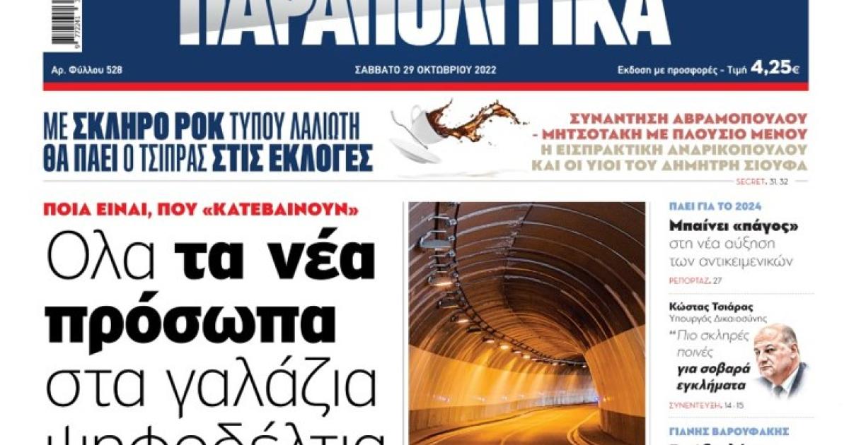 Με τίτλο: «Όλα τα νέα πρόσωπα στα γαλάζια ψηφοδέλτια» κυκλοφορούν αύριο, Σάββατο 29 Οκτωβρίου, τα «Παραπολιτικά».