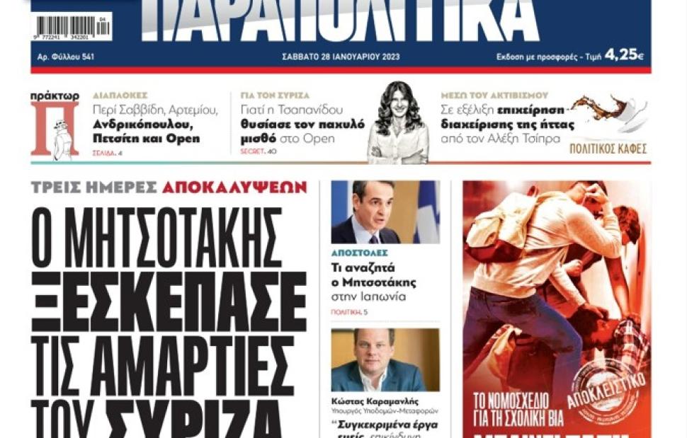 Αύριο, Σάββατο 28 Ιανουαρίου, η εφημερίδα ΠΑΡΑΠΟΛΙΤΙΚΑ κυκλοφορεί σε όλα τα περίπτερα της χώρας με πλούσια θεματολογία, πολλές αποκλειστικότητες, αλλά και με αποκαλυπτικά θέματα και ρεπορτάζ!