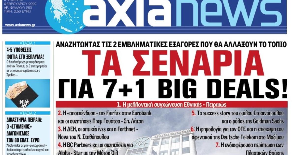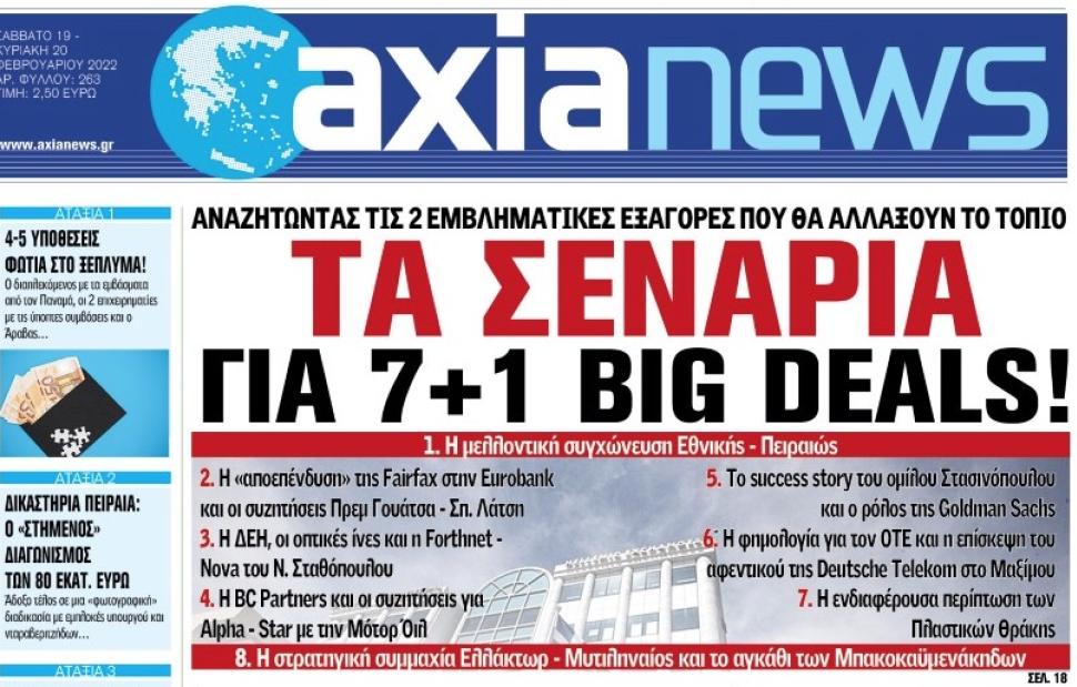 Με τίτλο: «Τα σενάρια για 7+1 big deals!» κυκλοφορεί αύριο, Σάββατο 19 Φεβρουαρίου, η «Axianews».