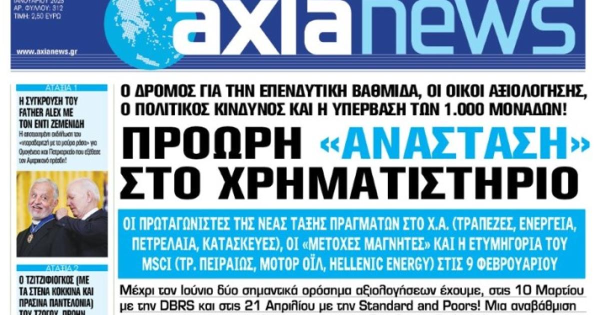 Με τίτλο: «Πρόωρη «ανάσταση» στο Χρηματιστήριο» κυκλοφορεί αύριο, Σάββατο 28 Ιανουαρίου, η «Axianews».