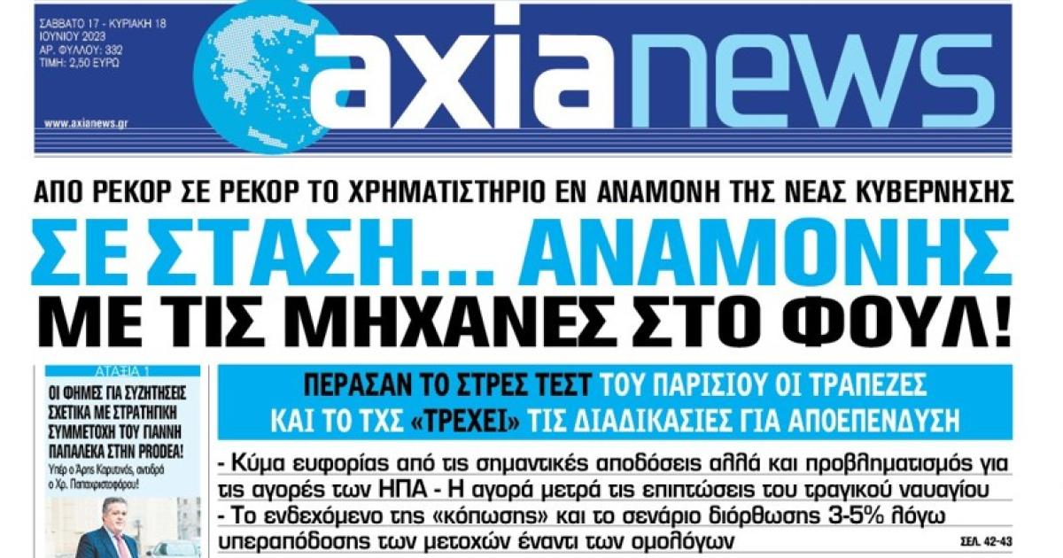 Με τίτλο: «Σε στάση… αναμονής με τις μηχανές στο φουλ!» κυκλοφορεί αύριο, Σάββατο 17 Ιουνίου, η «Axianews».