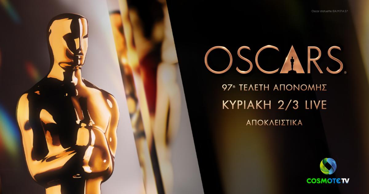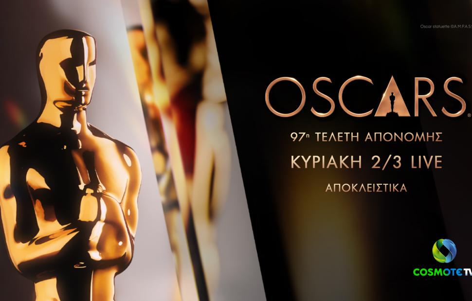 Όλη η βραδιά των OSCAR (κόκκινο χαλί, τελετή απονομής) θα προβληθεί και με υπότιτλους τη Δευτέρα 3/3 στις 19.30 (COSMOTE CINEMA OSCARS HD), ενώ θα είναι διαθέσιμη και στη δωρεάν on demand υπηρεσία της COSMOTE TV.