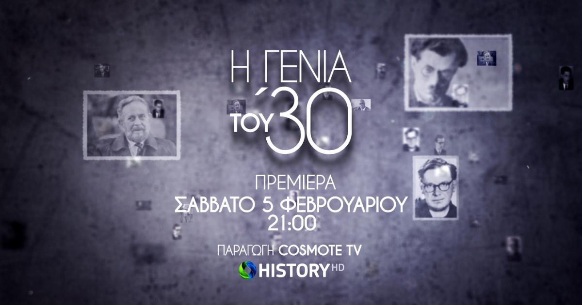 Η ζωή και το έργο κορυφαίων Ελλήνων λογοτεχνών, που διαμόρφωσαν και σημάδεψαν την πορεία της νεοελληνικής λογοτεχνίας, «ζωντανεύουν» στη νέα δραματοποιημένη σειρά ντοκιμαντέρ της COSMOTE TV, με τίτλο «Η Γενιά του ‘30». Το νέο docuseries κάνει πρεμιέρα το Σάββατο 5/2 στις 21.00, στο COSMOTE HISTORY HD, με το πρώτο επεισόδιο να μεταδίδεται ταυτόχρονα, ελεύθερα για το κοινό, από το επίσημο YouTube κανάλι της COSMOTE TV.