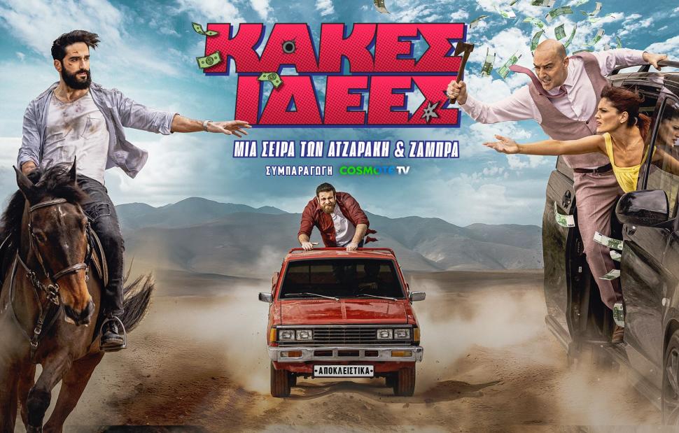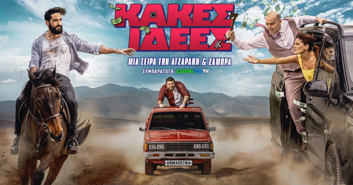 Τη Δευτέρα 15 Σεπτεμβρίου θα κάνει πρεμιέρα η νέα συμπαραγωγή μυθοπλασίας της COSMOTE TV, «Κακές Ιδέες». Η κωμική σειρά 6 επεισοδίων, σε σενάριο των Διονύση Ατζαράκη και Θωμά Ζάμπρα και σε σκηνοθεσία Διονύση Ατζαράκη, θα προβάλλεται κάθε Δευτέρα στις 23:00 αποκλειστικά στο COSMOTE CINEMA 1HD. Αμέσως μετά την προβολή του στο κανάλι, κάθε νέο επεισόδιο της σειράς θα είναι διαθέσιμο On Demand, σε 4Κ ανάλυση.