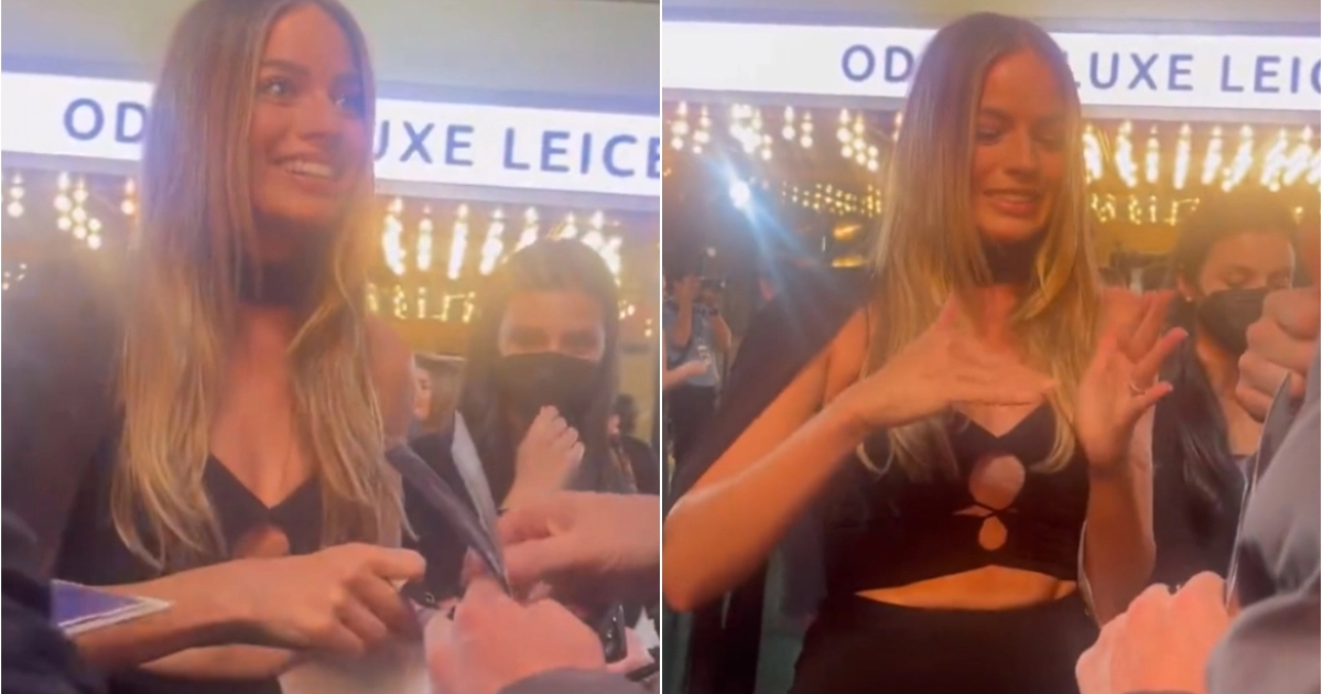 Αυτό συνέβη στην πρεμιέρα της ταινίας «Άμστερνταμ» στο Λονδίνο πέρυσι, όταν ένας άνδρας δίνει στη Ρόμπι ένα κομμάτι χαρτί, του οποίου το περιεχόμενο δεν φαίνεται στο κλιπ. «Για μένα;» ρωτάει η 33χρονη ηθοποιός, πριν αναφωνήσει: «Το ξέρω». Στη συνέχεια, είπε στη νοηματική το αλφάβητο με τον άνδρα να χαμογελά ενθουσιασμένος που προσπάθησε να επικοινωνήσει μαζί του, με αυτόν τον τρόπο.