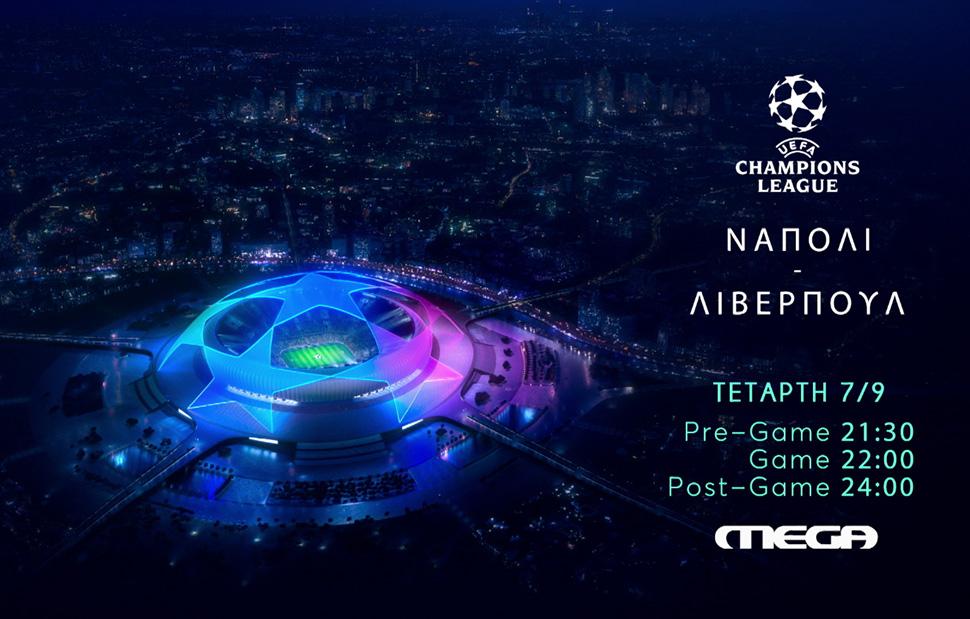 Την Τετάρτη 7 Σεπτεμβρίου, στις 22:00, το MEGA θα μεταδώσει ζωντανά την αναμέτρηση Νάπολι-Λίβερπουλ για την 1η αγωνιστική της φάσης των ομίλων του UEFA Champions League.
