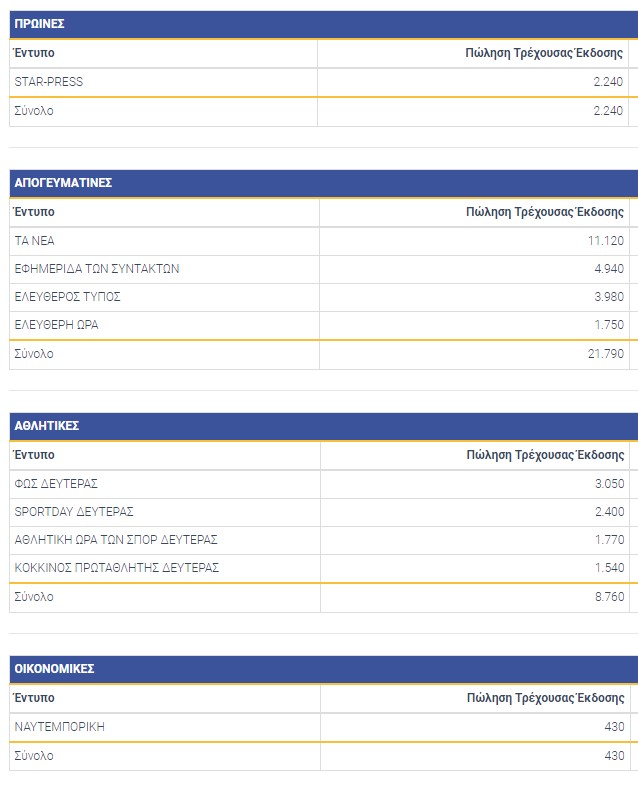 Δελτίο Ημερήσιων Εφημερίδων (Πανελλαδικό) Κυριακή 22 Ιανουαρίου 2023.