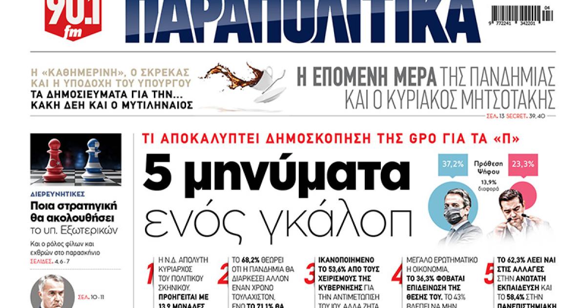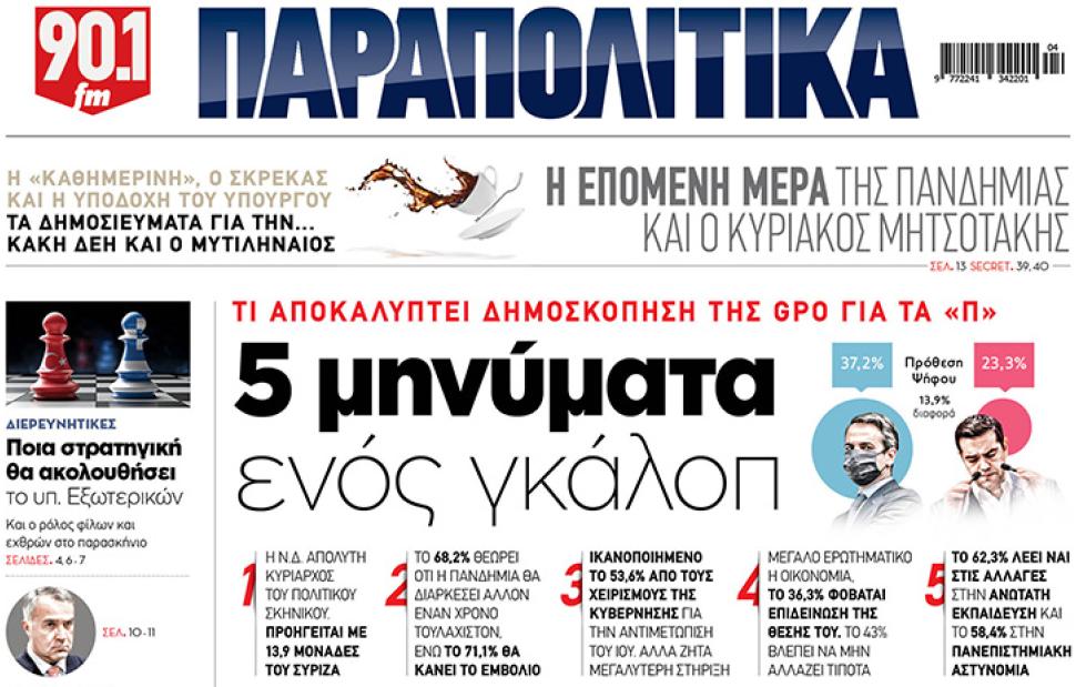 - Η Ν.Δ. απόλυτη κυρίαρχος του πολιτικού σκηνικού. Προηγείται με 13,9 μονάδες του ΣΥΡΙΖΑ