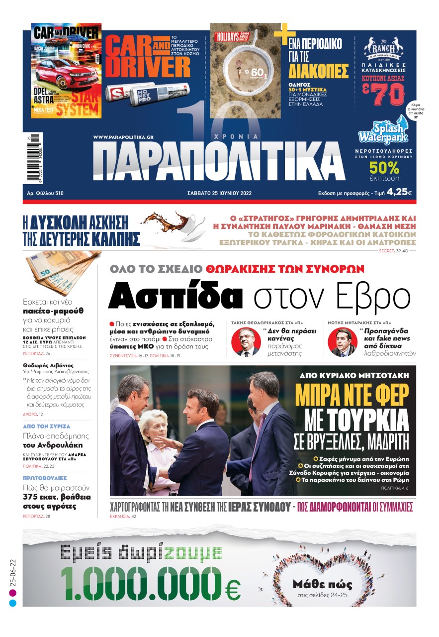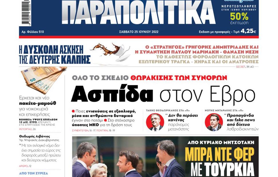 Αύριο, Σάββατο 25 Ιουνίου, η εφημερίδα ΠΑΡΑΠΟΛΙΤΙΚΑ κυκλοφορεί σε όλα τα περίπτερα της χώρας με πλούσια θεματολογία και πολλές αποκλειστικότητες. Αποκαλυπτικά θέματα, ρεπορτάζ και μεγάλες προσφορές για όλους τους αναγνώστες.