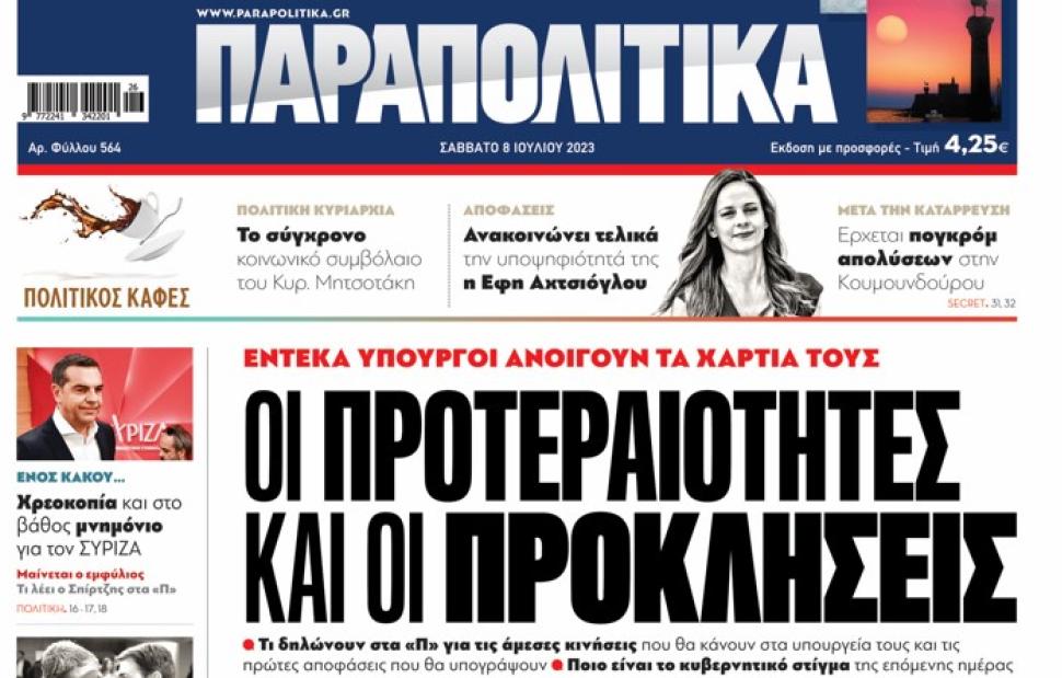 Αύριο, Σάββατο 8 Ιουλίου, η εφημερίδα «ΠΑΡΑΠΟΛΙΤΙΚΑ» κυκλοφορεί σε όλα τα περίπτερα της χώρας με πλούσια θεματολογία, πολλές αποκλειστικότητες, αλλά και με αποκαλυπτικά θέματα και ρεπορτάζ!