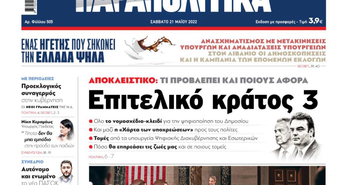 Αύριο, Σάββατο 21 Μαΐου, η εφημερίδα ΠΑΡΑΠΟΛΙΤΙΚΑ κυκλοφορεί σε όλα τα περίπτερα της χώρας με πλούσια θεματολογία και πολλές αποκλειστικότητες. Αποκαλυπτικά θέματα, ρεπορτάζ και μεγάλες προσφορές για όλους τους αναγνώστες.