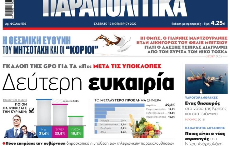Αύριο, Σάββατο 12 Νοεμβρίου, η εφημερίδα «Παραπολιτικά» κυκλοφορεί σε όλα τα περίπτερα της χώρας με πλούσια θεματολογία και πολλές αποκλειστικότητες. Αποκαλυπτικά θέματα, ρεπορτάζ και μεγάλες προσφορές για όλους τους αναγνώστες μας!