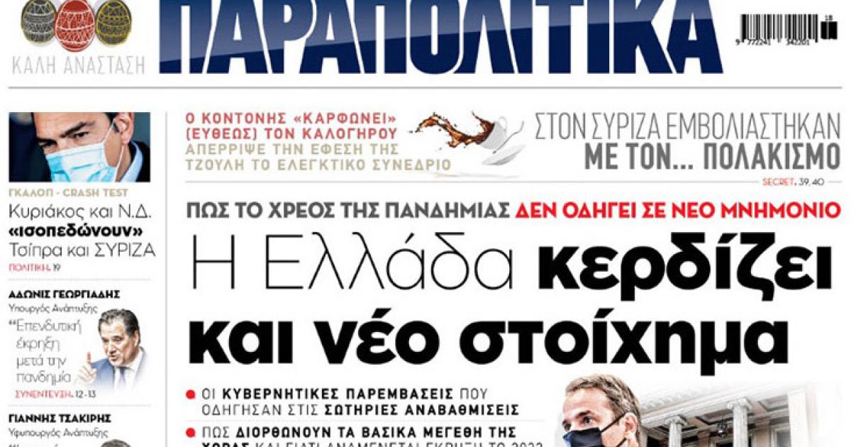 Εκτάκτως αύριο, Μ. Πέμπτη 29 Απριλίου, η εφημερίδα ΠΑΡΑΠΟΛΙΤΙΚΑ κυκλοφορεί σε όλα τα περίπτερα της χώρας με πλούσια θεματολογία και πολλές αποκλειστικότητες. Αποκαλυπτικά θέματα, ρεπορτάζ και μεγάλες προσφορές για όλους τους αναγνώστες.