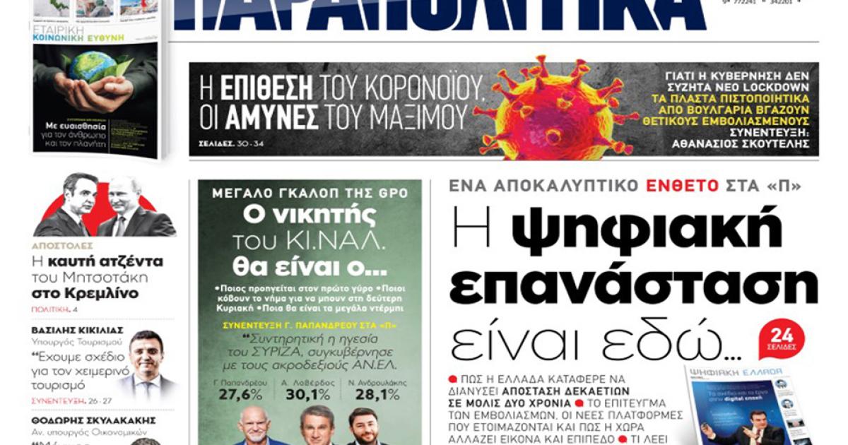 Αύριο, Σάββατο 27 Νοεμβρίου, η εφημερίδα ΠΑΡΑΠΟΛΙΤΙΚΑ κυκλοφορεί σε όλα τα περίπτερα της χώρας με πλούσια θεματολογία και πολλές αποκλειστικότητες. Αποκαλυπτικά θέματα, ρεπορτάζ και μεγάλες προσφορές για όλους τους αναγνώστες.