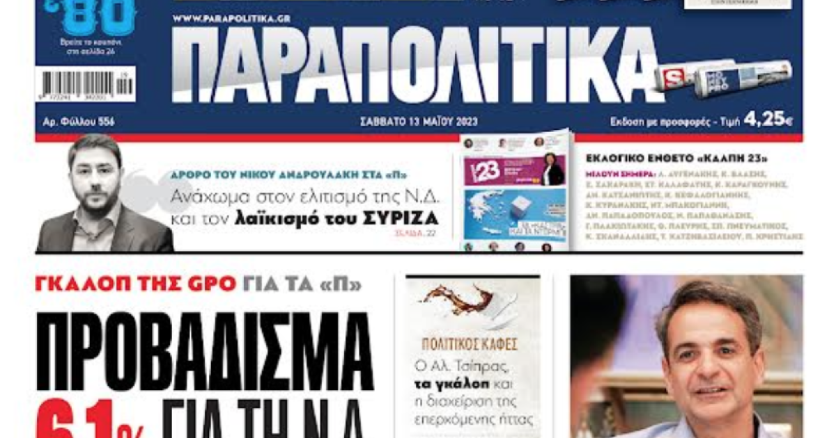 Αύριο, Σάββατο 13 Μαϊου, η εφημερίδα ΠΑΡΑΠΟΛΙΤΙΚΑ κυκλοφορεί σε όλα τα περίπτερα της χώρας με πλούσια θεματολογία, πολλές αποκλειστικότητες, αλλά και με αποκαλυπτικά θέματα και ρεπορτάζ!