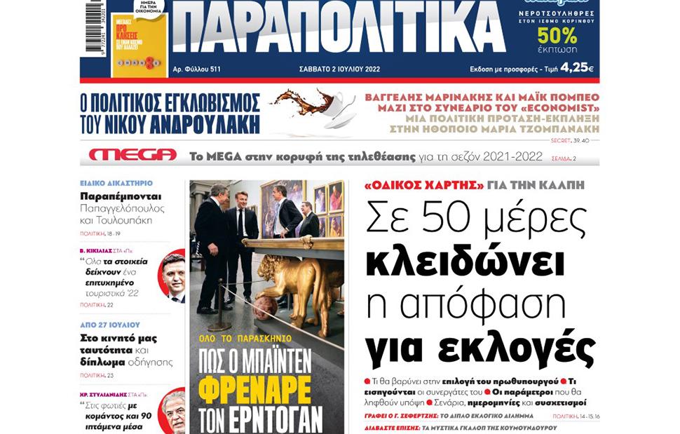 Αύριο, Σάββατο 2 Ιουλίου, η εφημερίδα ΠΑΡΑΠΟΛΙΤΙΚΑ κυκλοφορεί σε όλα τα περίπτερα της χώρας με πλούσια θεματολογία και πολλές αποκλειστικότητες. Αποκαλυπτικά θέματα, ρεπορτάζ και μεγάλες προσφορές για όλους τους αναγνώστες.