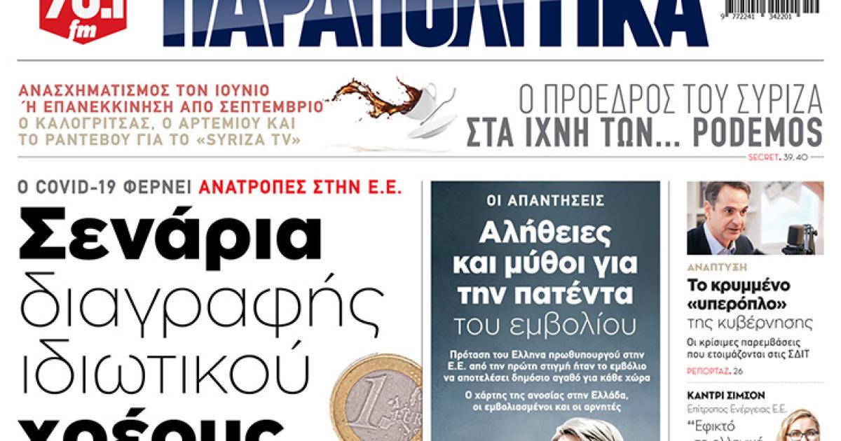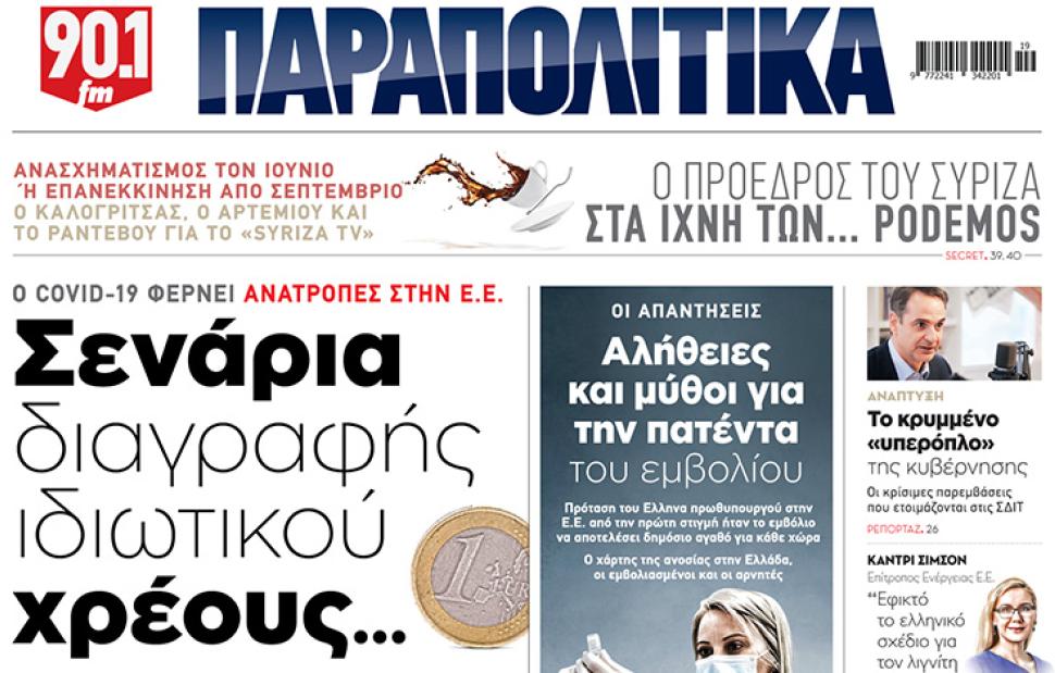 Αύριο Σάββατο 8 Μαΐου, η εφημερίδα ΠΑΡΑΠΟΛΙΤΙΚΑ κυκλοφορεί σε όλα τα περίπτερα της χώρας με πλούσια θεματολογία και πολλές αποκλειστικότητες. Αποκαλυπτικά θέματα, ρεπορτάζ και μεγάλες προσφορές για όλους τους αναγνώστες.
