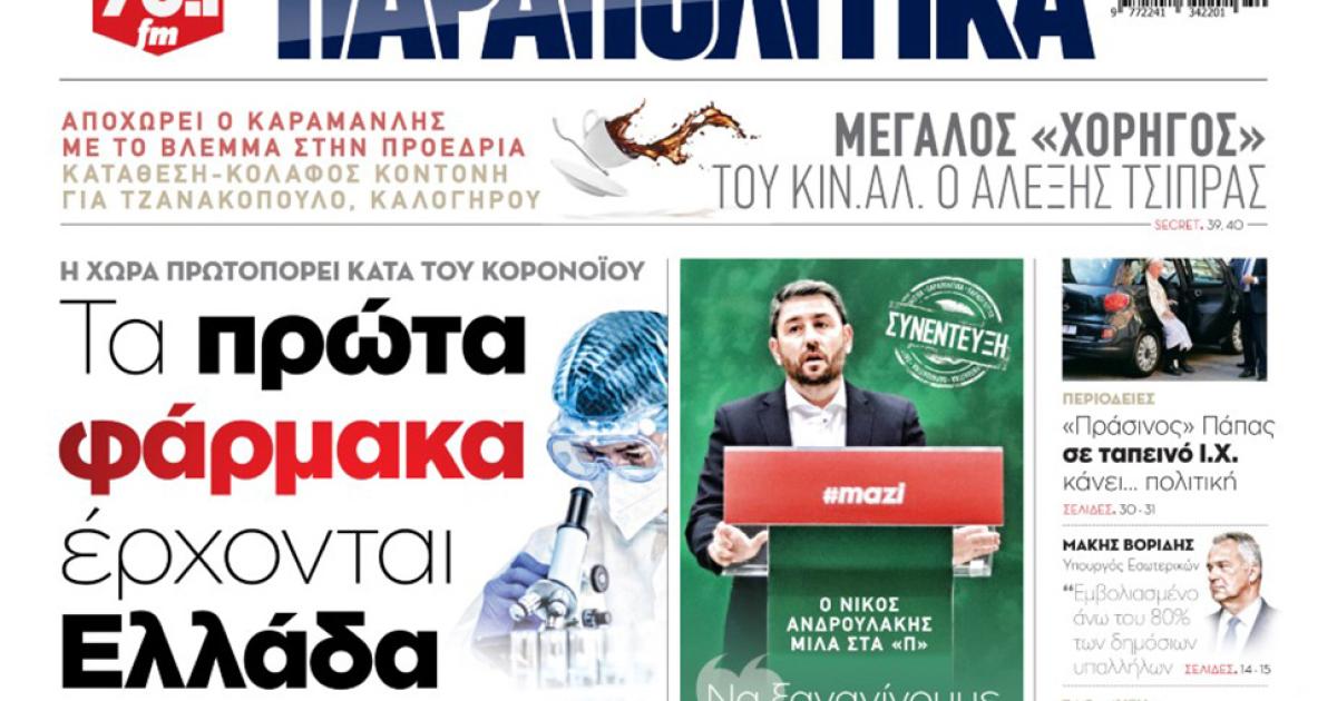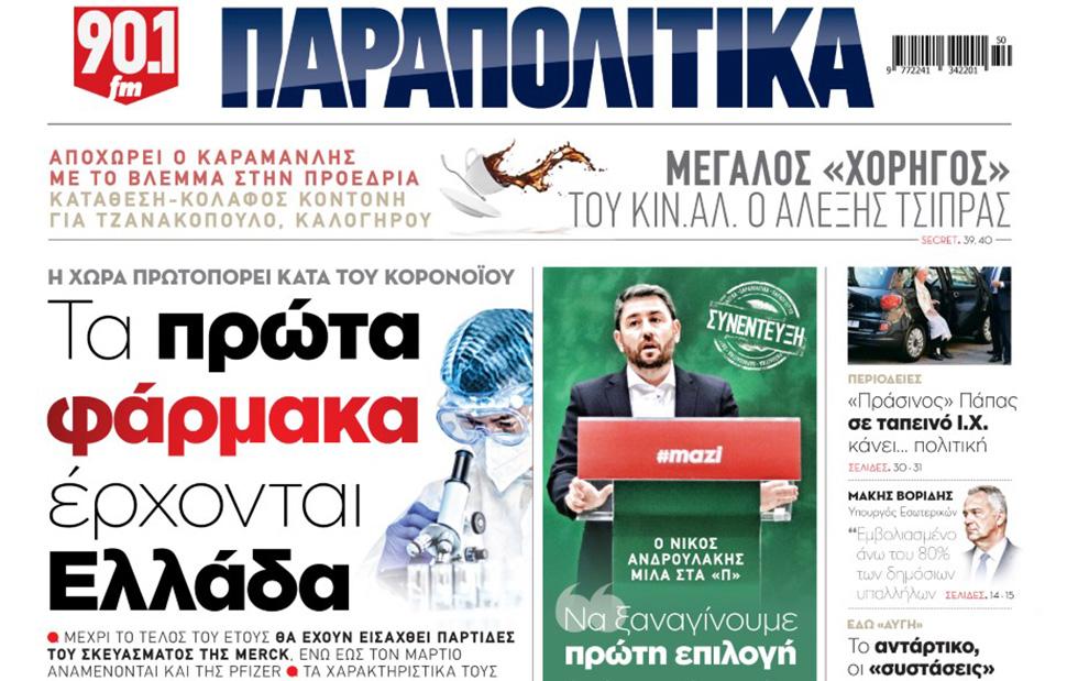 Αύριο, Σάββατο 11 Δεκεμβρίου, η εφημερίδα ΠΑΡΑΠΟΛΙΤΙΚΑ κυκλοφορεί σε όλα τα περίπτερα της χώρας με πλούσια θεματολογία και πολλές αποκλειστικότητες. Αποκαλυπτικά θέματα, ρεπορτάζ και μεγάλες προσφορές για όλους τους αναγνώστες.
