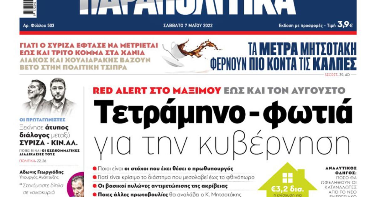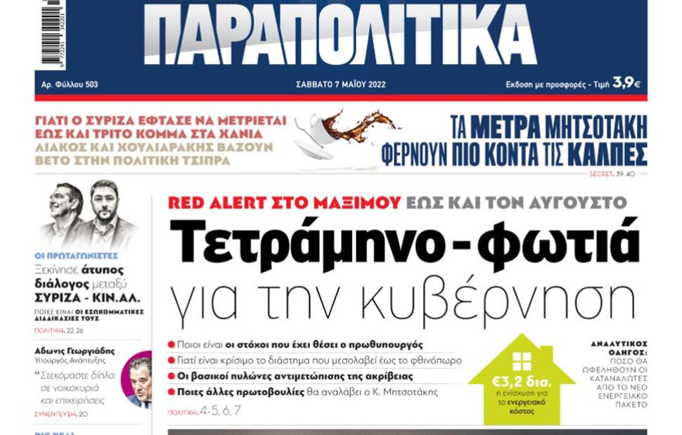 Αύριο, Σάββατο 7 Μαΐου, η εφημερίδα ΠΑΡΑΠΟΛΙΤΙΚΑ κυκλοφορεί σε όλα τα περίπτερα της χώρας με πλούσια θεματολογία και πολλές αποκλειστικότητες. Αποκαλυπτικά θέματα, ρεπορτάζ και μεγάλες προσφορές για όλους τους αναγνώστες μας!