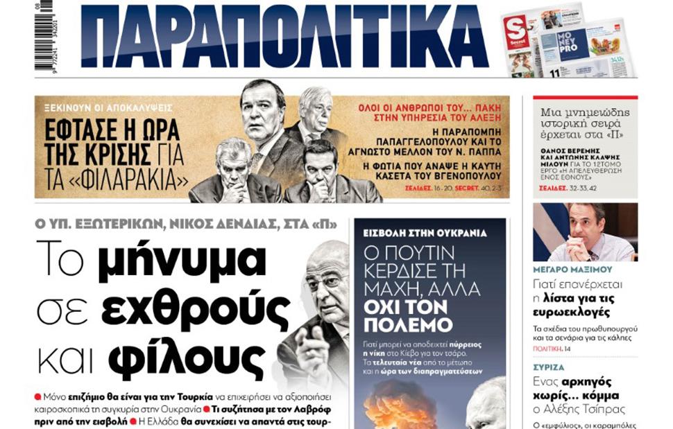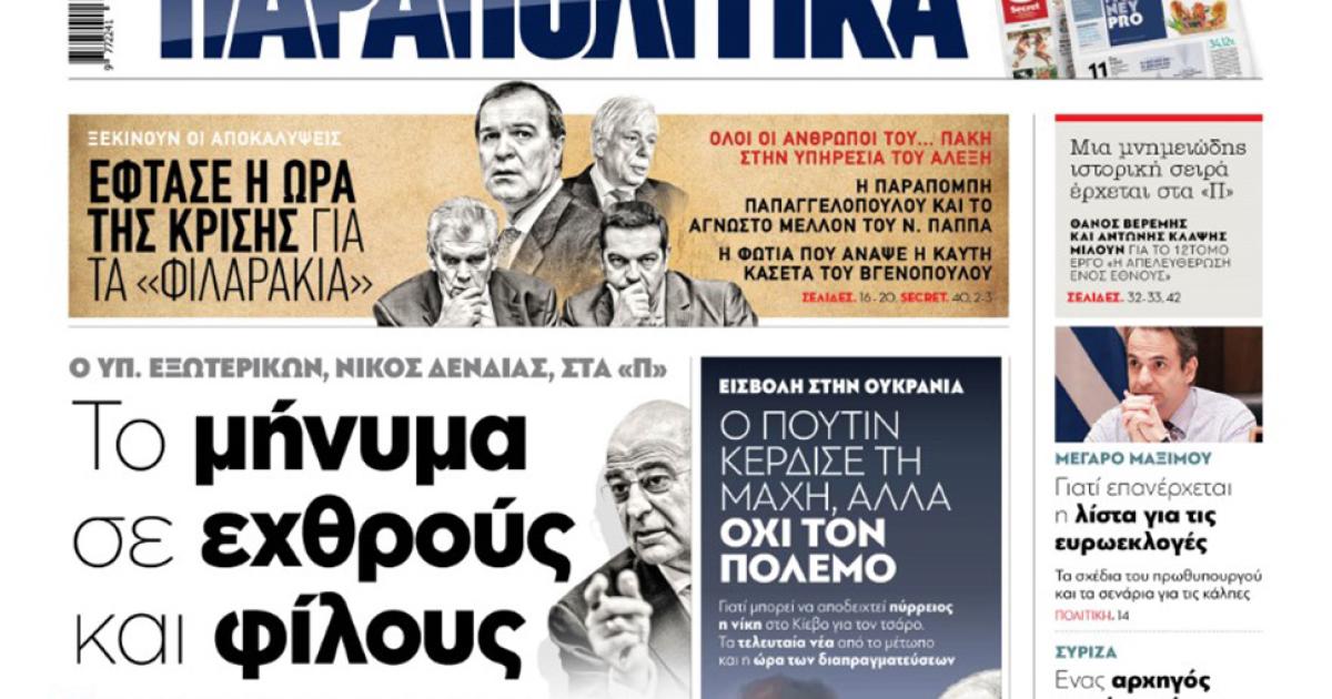 Αύριο, Σάββατο 26 Φεβρουαρίου, η εφημερίδα ΠΑΡΑΠΟΛΙΤΙΚΑ κυκλοφορεί σε όλα τα περίπτερα της χώρας με πλούσια θεματολογία και πολλές αποκλειστικότητες. Αποκαλυπτικά θέματα, ρεπορτάζ και μεγάλες προσφορές για όλους τους αναγνώστες.