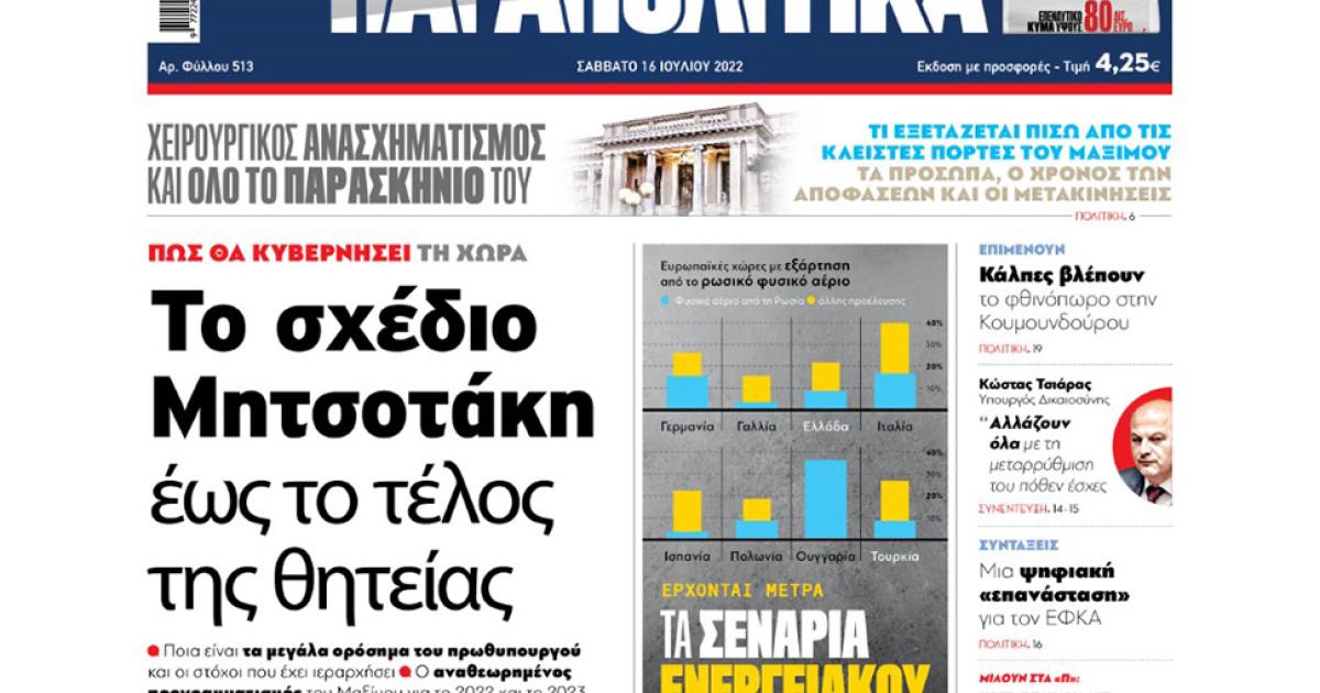 Αύριο, Σάββατο 16 Ιουλίου η εφημερίδα ΠΑΡΑΠΟΛΙΤΙΚΑ κυκλοφορεί σε όλα τα περίπτερα της χώρας με πλούσια θεματολογία και πολλές αποκλειστικότητες. Αποκαλυπτικά θέματα, ρεπορτάζ και μεγάλες προσφορές για όλους τους αναγνώστες.