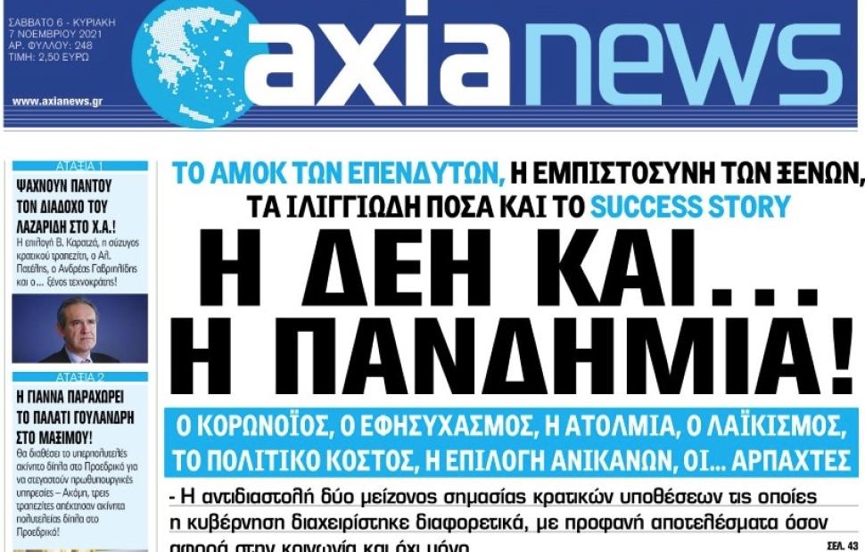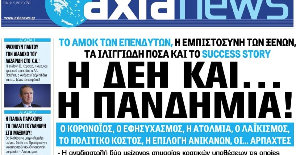 Με τίτλο: «H ΔΕΗ και… η πανδημία» κυκλοφορεί αύριο, Σάββατο 6 Νοεμβρίου η «Axianews».