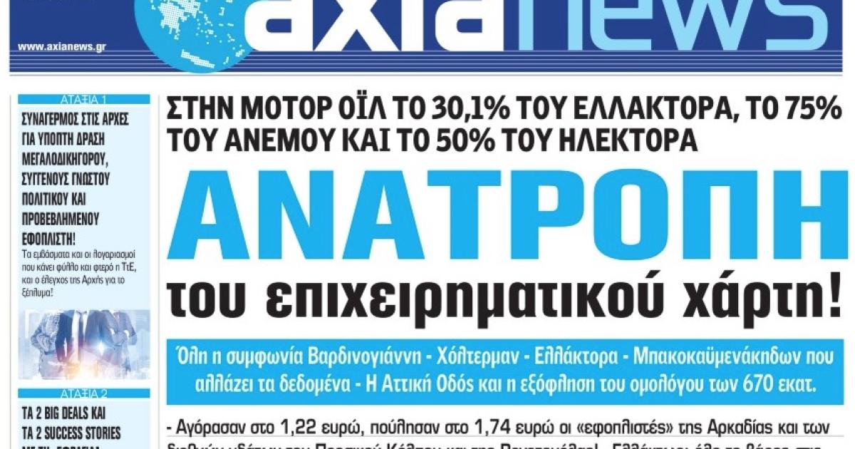 Με τίτλο: «Ανατροπή του επιχειρηματικού χάρτη!» κυκλοφορεί αύριο, Σάββατο 7 Μαΐου η «Axianews».