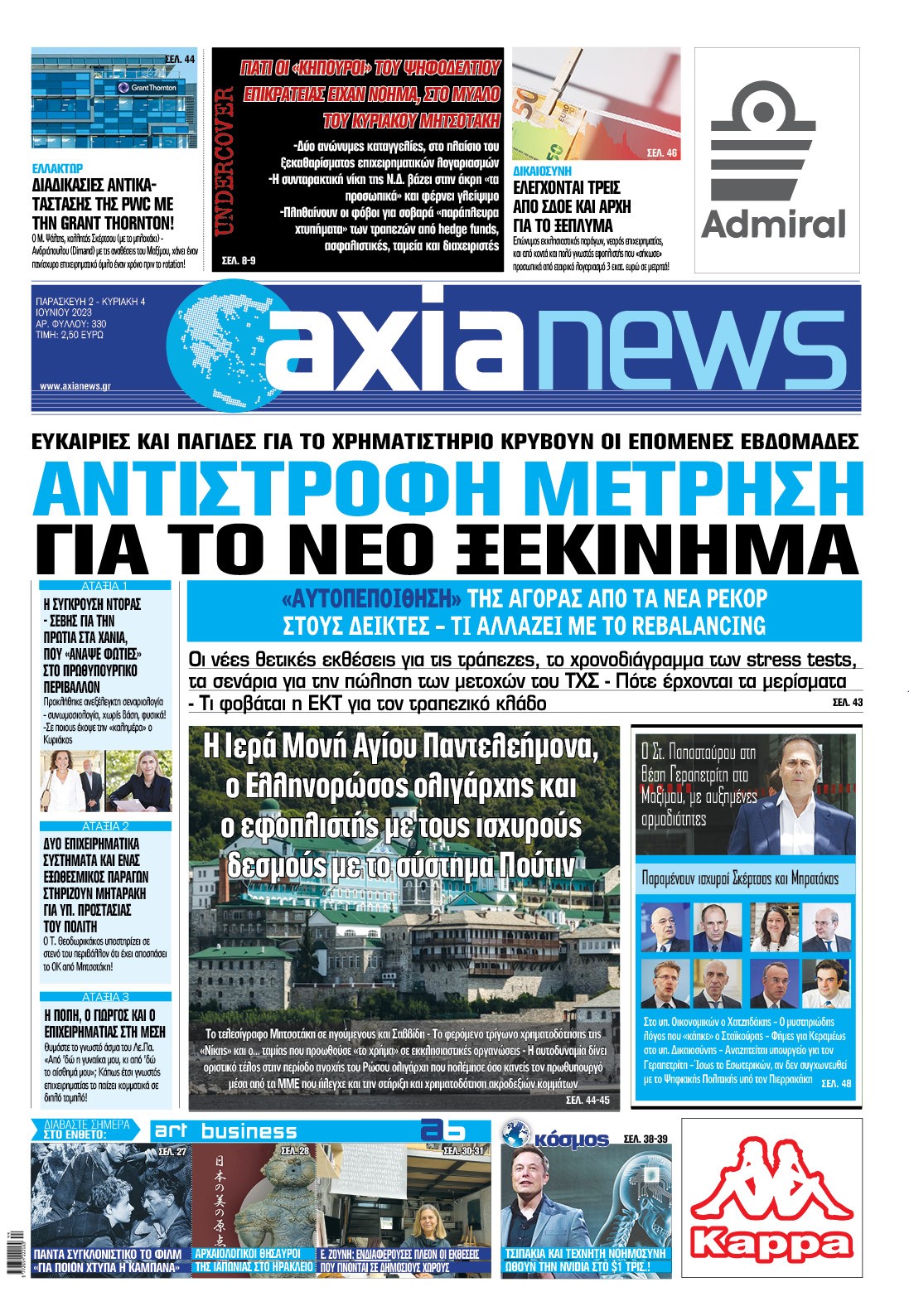 Με τίτλο: «Αντίστροφη μέτρηση για το νέο ξεκίνημα» κυκλοφορεί εκτάκτως αύριο, Παρασκευή 2 Ιουνίου, η «Axianews».