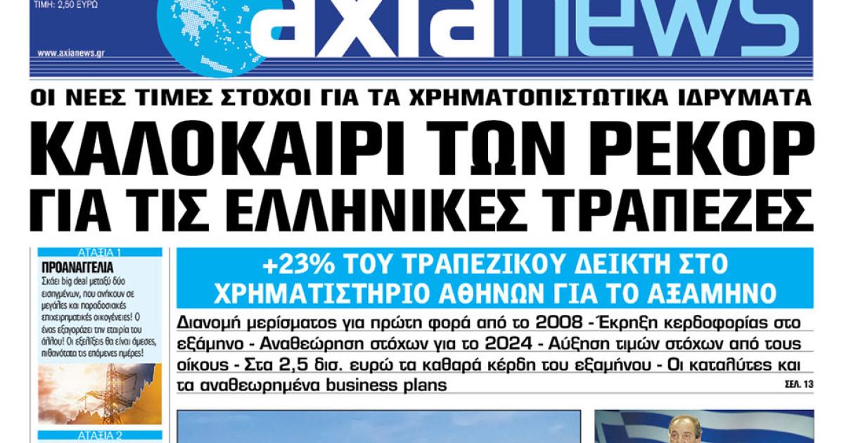 Με τίτλο: «Καλοκαίρι των ρεκόρ για τις ελληνικές τράπεζες» κυκλοφορεί αύριο, Σάββατο 3 Αυγούστου, η «Axianews».