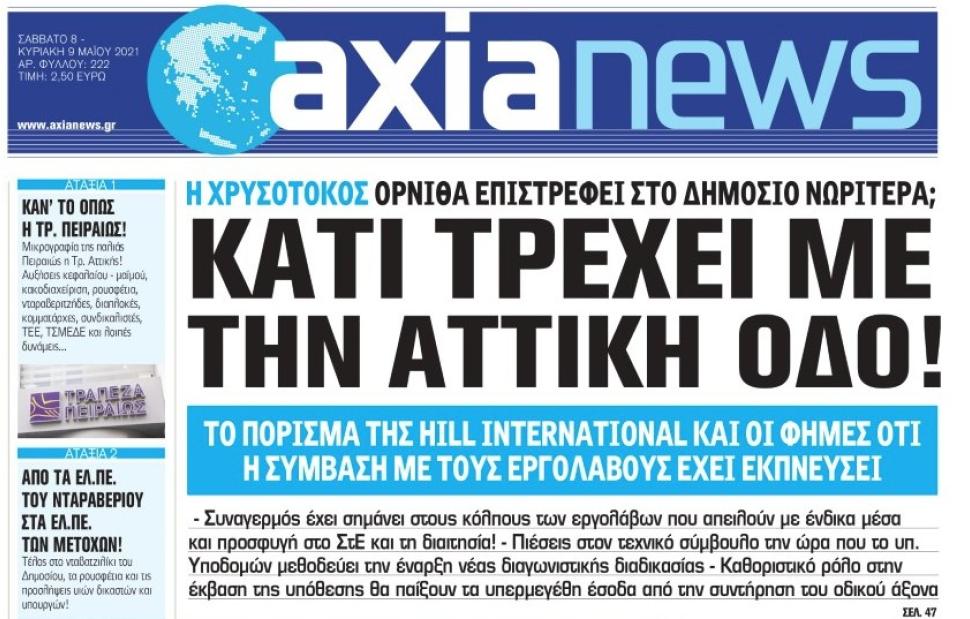 Με τίτλο: «Kάτι τρέχει με την Αττική Οδό!» κυκλοφορεί αύριο, Σάββατο 8 Μαΐου η «Axianews».