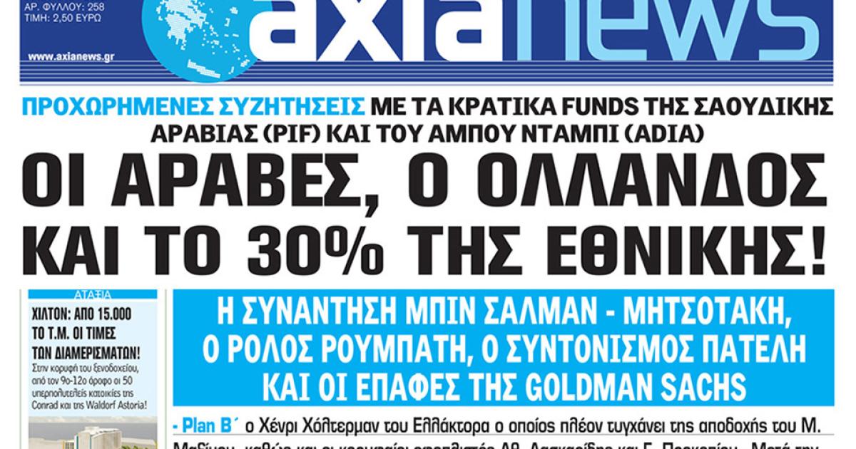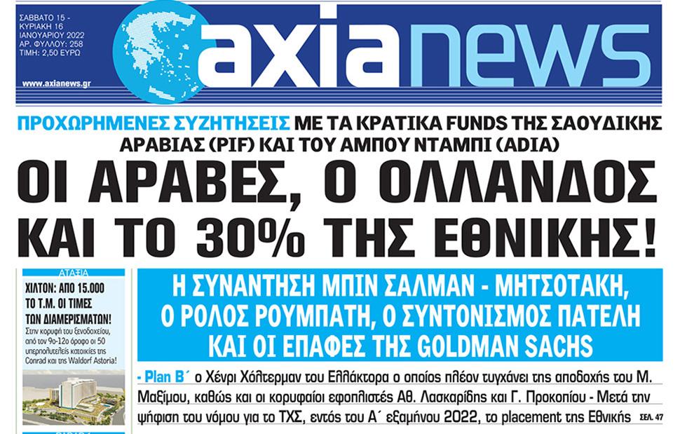 Με τίτλο: «Οι Άραβες, ο Ολλανδός και το 30% της Εθνικής» κυκλοφορεί αύριο, Σάββατο 15 Ιανουαρίου η «Axianews».