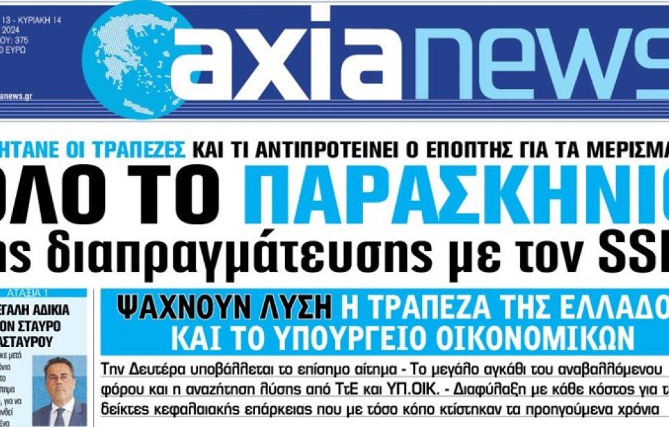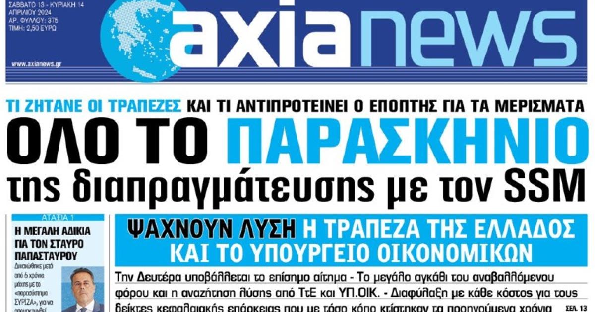 Με τίτλο: «Όλο το παρασκήνιο της διαπραγμάτευσης με τον SSM» κυκλοφορεί αύριο, Σάββατο 13 Απριλίου η «Axianews».