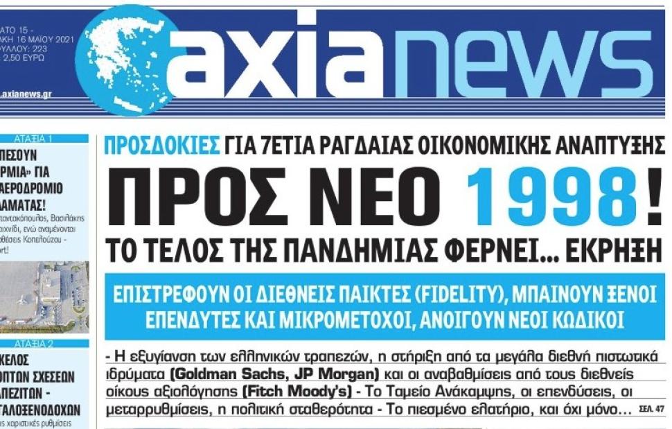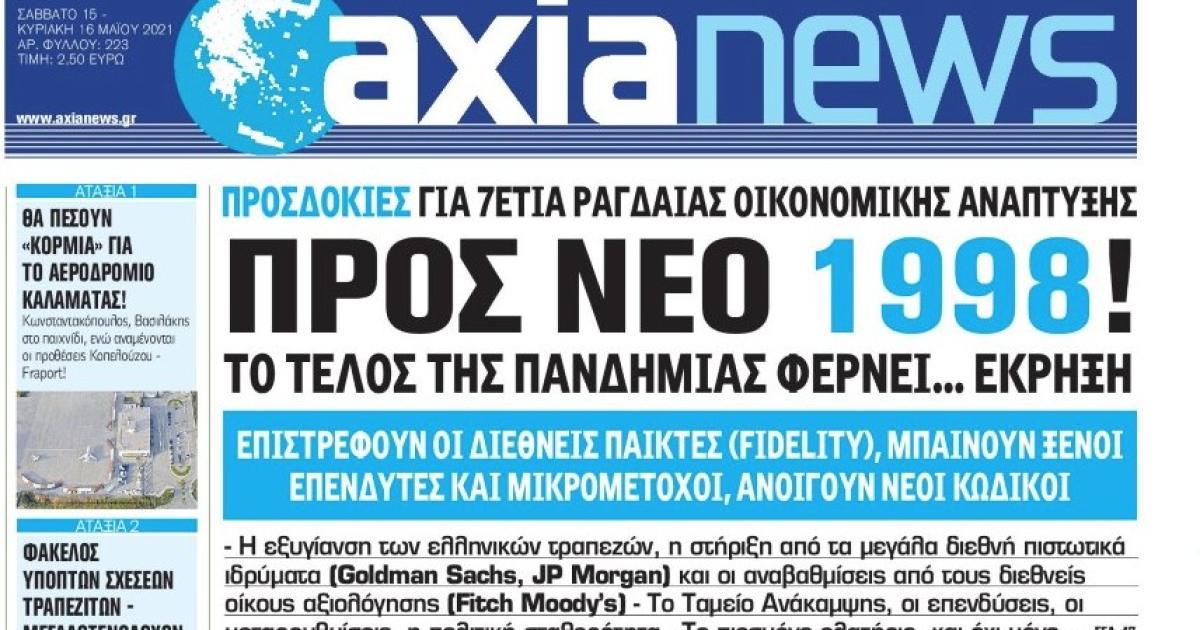Με τίτλο: «Προς νέο 1998!» κυκλοφορεί αύριο, Σάββατο 15 Μαΐου η «Axianews».