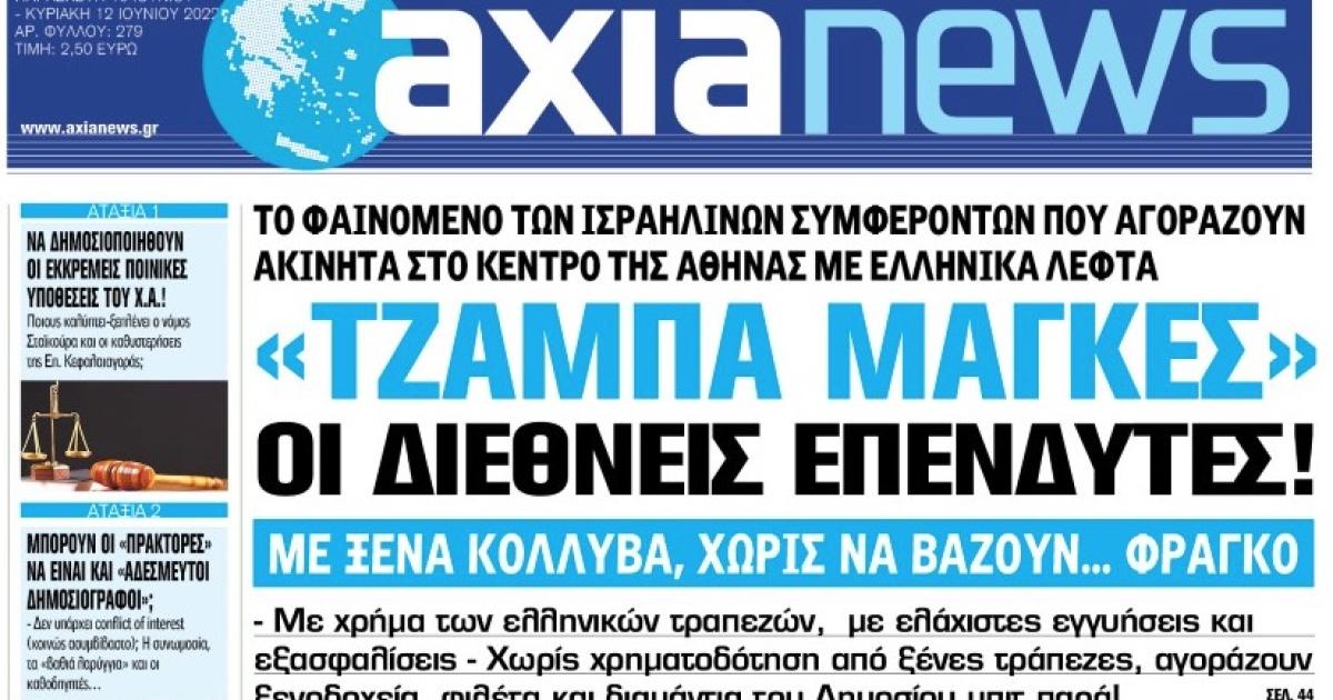 Με τίτλο: «“Tζάμπα μάγκες” οι διεθνείς επενδυτές!» κυκλοφορεί εκτάκτως αύριο, Παρασκευή 10 Ιουνίου, η «Axianews».