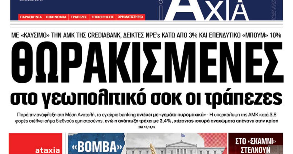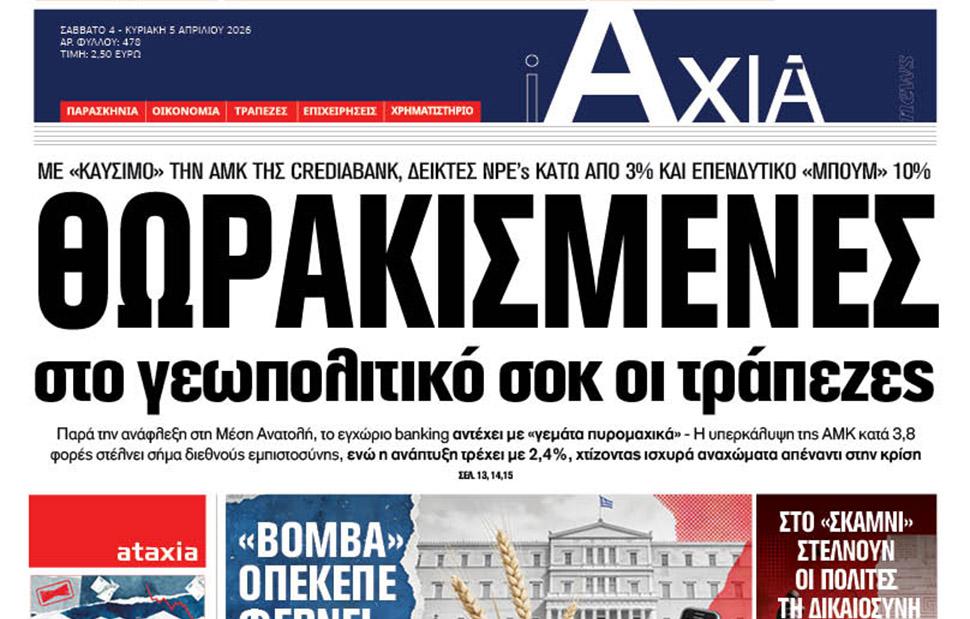 Με τίτλο: «Θωρακισμένες στο γεωπολιτικό σοκ οι τράπεζες» κυκλοφορεί αύριο, Σάββατο 4 Απριλίου, η «iAxia».