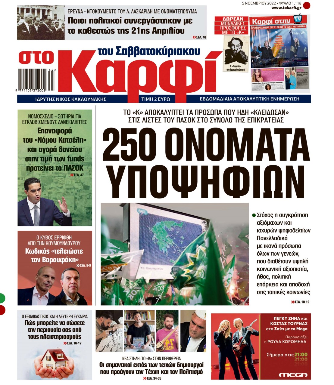 Μη χάσετε το Σάββατο 5 Νοεμβρίου 2022 το αποκαλυπτικό «ΚΑΡΦΙ» που κυκλοφορεί σε όλα τα περίπτερα της χώρας με πλούσια θεματολογία και πολλές αποκλειστικότητες.