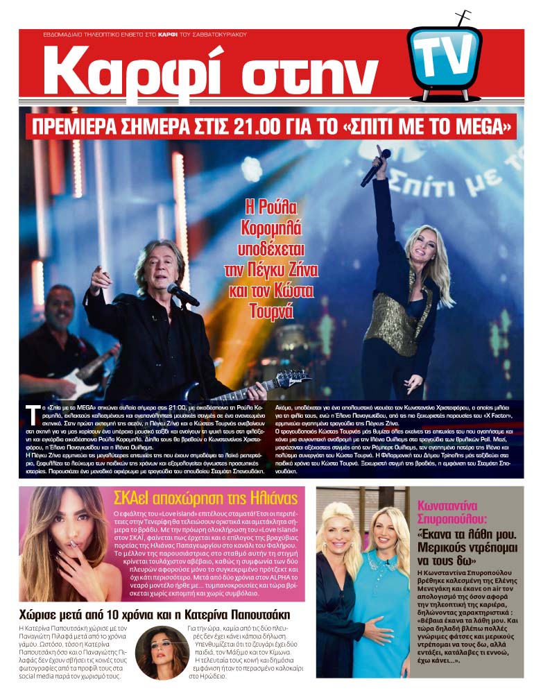 - ΚΑΡΦΙ στην TV. Μάθετε όλες τις εξελίξεις για τις τηλεοπτικές σειρές καθώς και τις ταινίες που θα προβληθούν – Ακόμη ενημερωθείτε για Τέχνες και Πολιτισμό