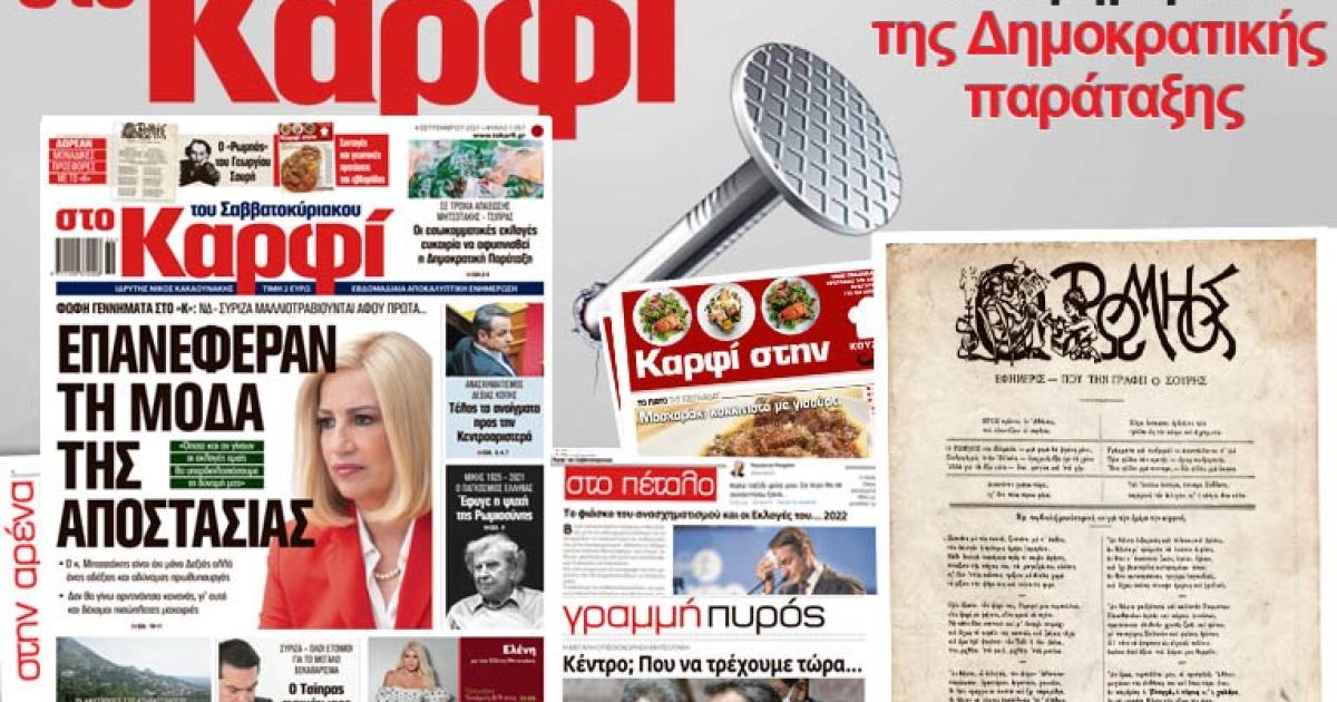 Μη χάσετε το Σάββατο 4 Σεπτεμβρίου 2021, το αποκαλυπτικό «ΚΑΡΦΙ» που κυκλοφορεί σε όλα τα περίπτερα της χώρας με πλούσια θεματολογία και πολλές αποκλειστικότητες.