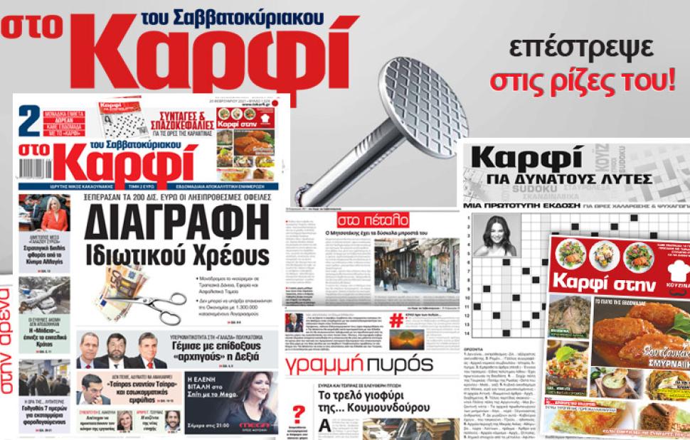 - Καρφί για δυνατούς λύτες. Eνα πολυσέλιδο ένθετο με Σταυρόλεξα, Sudoku , Κουίζ, Σπαζοκεφαλιές και τις λύσεις τους