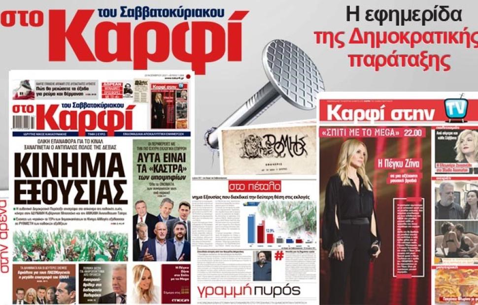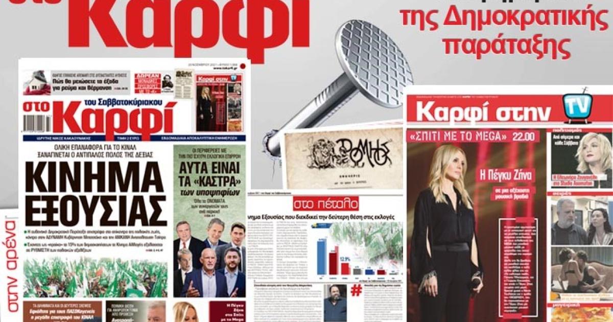 Μη χάσετε το Σάββατο 20 Νοεμβρίου 2021, το αποκαλυπτικό «ΚΑΡΦΙ» που κυκλοφορεί σε όλα τα περίπτερα της χώρας με πλούσια θεματολογία και πολλές αποκλειστικότητες.