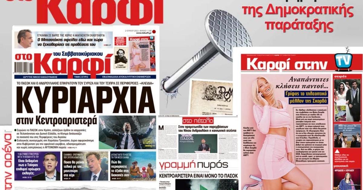Μη χάσετε το Σάββατο 2 Ιουλίου 2022 το αποκαλυπτικό «ΚΑΡΦΙ» που κυκλοφορεί σε όλα τα περίπτερα της χώρας με πλούσια θεματολογία και πολλές αποκλειστικότητες.