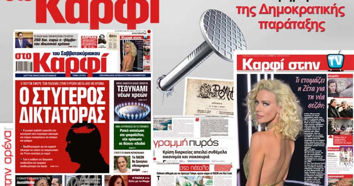 Μη χάσετε αυτό το Σάββατο 26 Φεβρουαρίου 2022 το αποκαλυπτικό «ΚΑΡΦΙ» που κυκλοφορεί σε όλα τα περίπτερα της χώρας με πλούσια θεματολογία και πολλές αποκλειστικότητες.