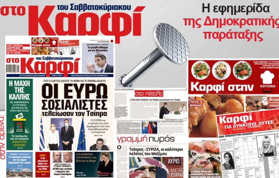 Μη χάσετε το Σάββατο 15 Μαΐου 2021, το αποκαλυπτικό «ΚΑΡΦΙ» που κυκλοφορεί σε όλα τα περίπτερα της χώρας με πλούσια θεματολογία και πολλές αποκλειστικότητες.