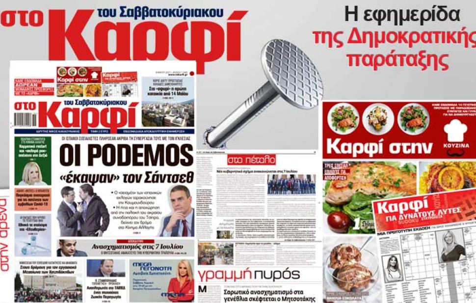 Μη χάσετε το Σάββατο 8 Μαΐου 2021, το αποκαλυπτικό «ΚΑΡΦΙ» που κυκλοφορεί σε όλα τα περίπτερα της χώρας με πλούσια θεματολογία και πολλές αποκλειστικότητες.