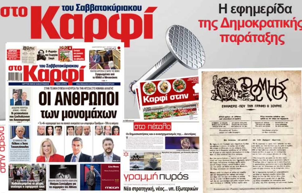 Μη χάσετε το Σάββατο 28 Αυγούστου 2021, το αποκαλυπτικό «ΚΑΡΦΙ» που κυκλοφορεί σε όλα τα περίπτερα της χώρας με πλούσια θεματολογία και πολλές αποκλειστικότητες.