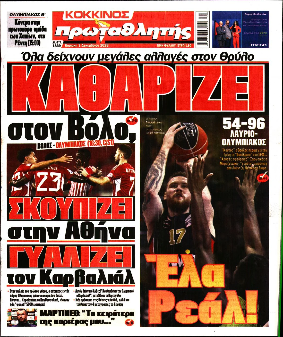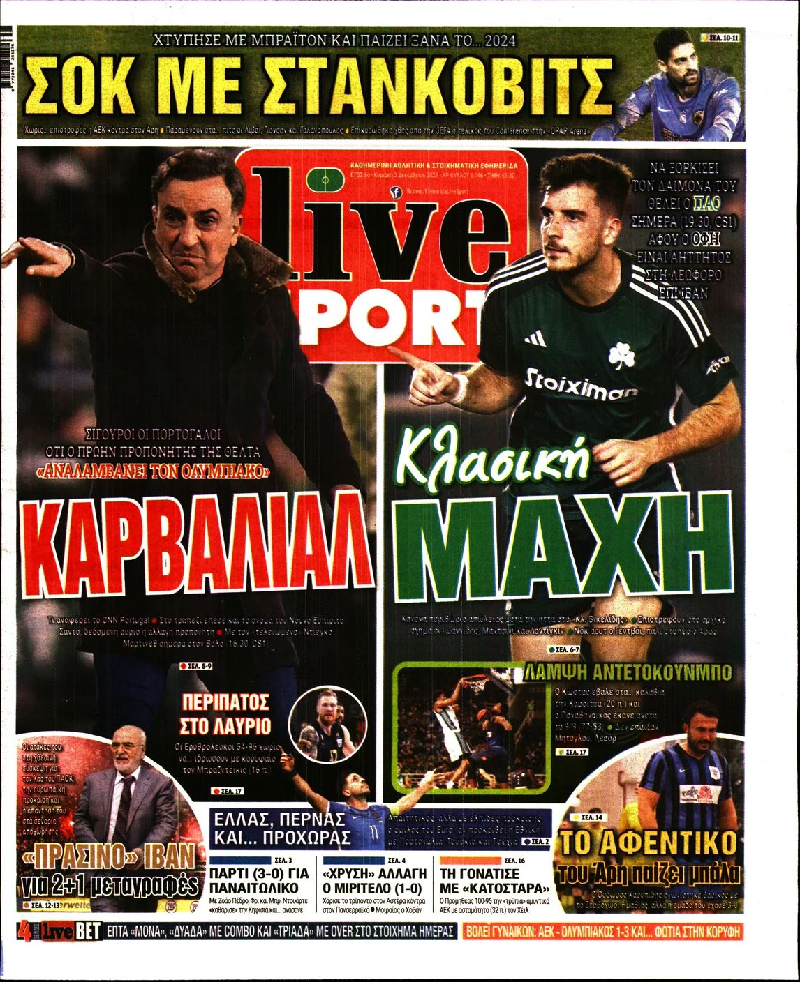 Οι αθλητικές μεταδόσεις της ημέρας (03/12/2023)