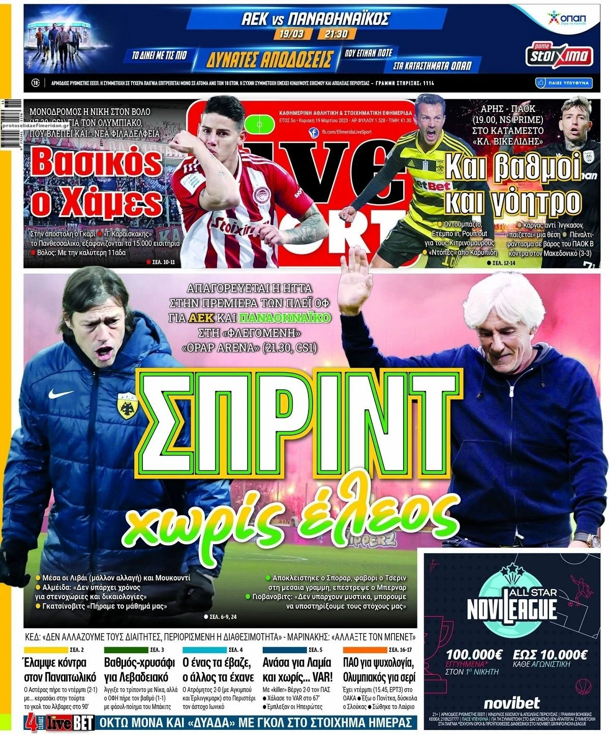 Οι αθλητικές μεταδόσεις της ημέρας (18/03/2023)