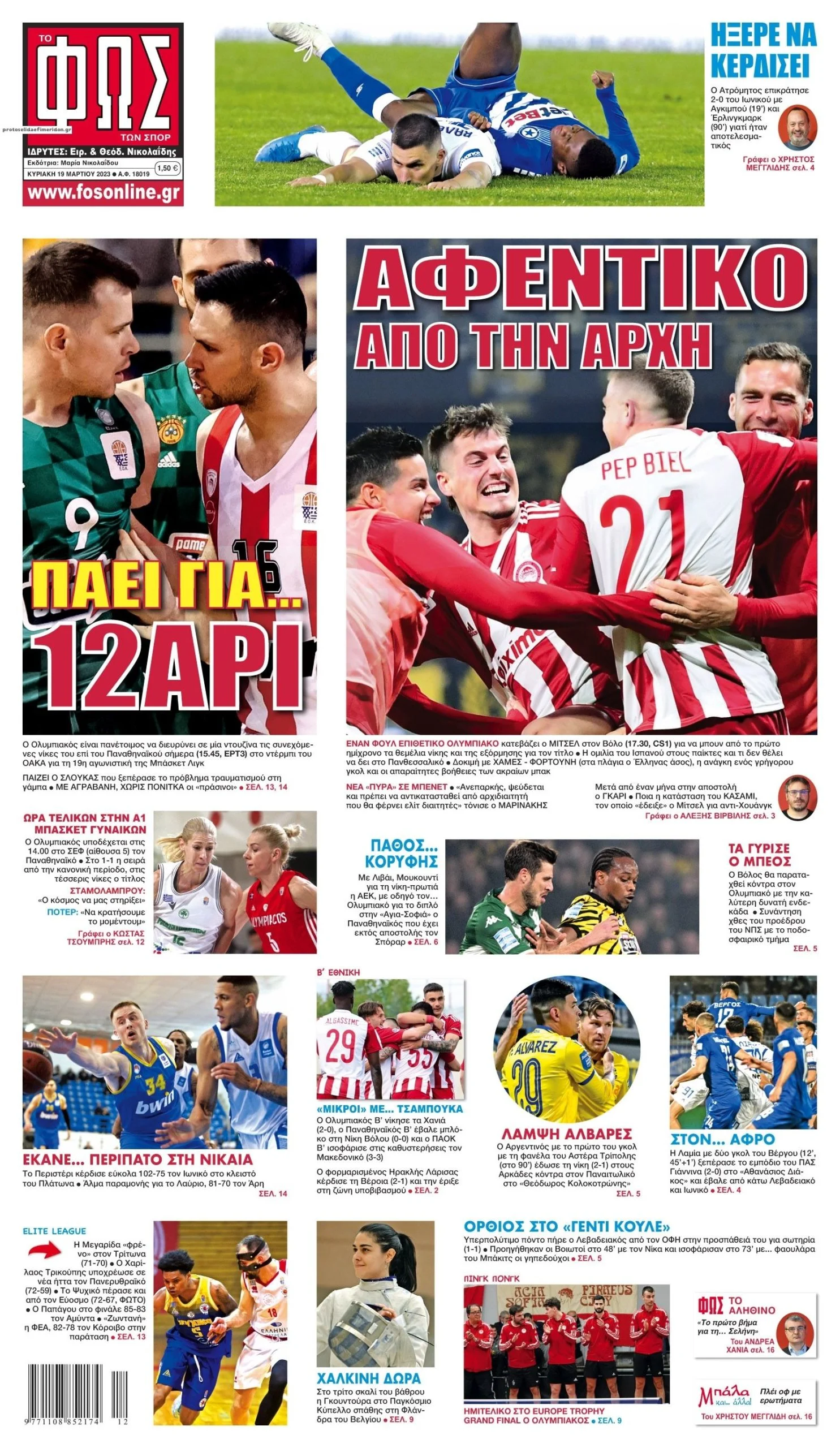 Τα πρωτοσέλιδα των εφημερίδων της Κυριακής 19 Μαρτίου 2023